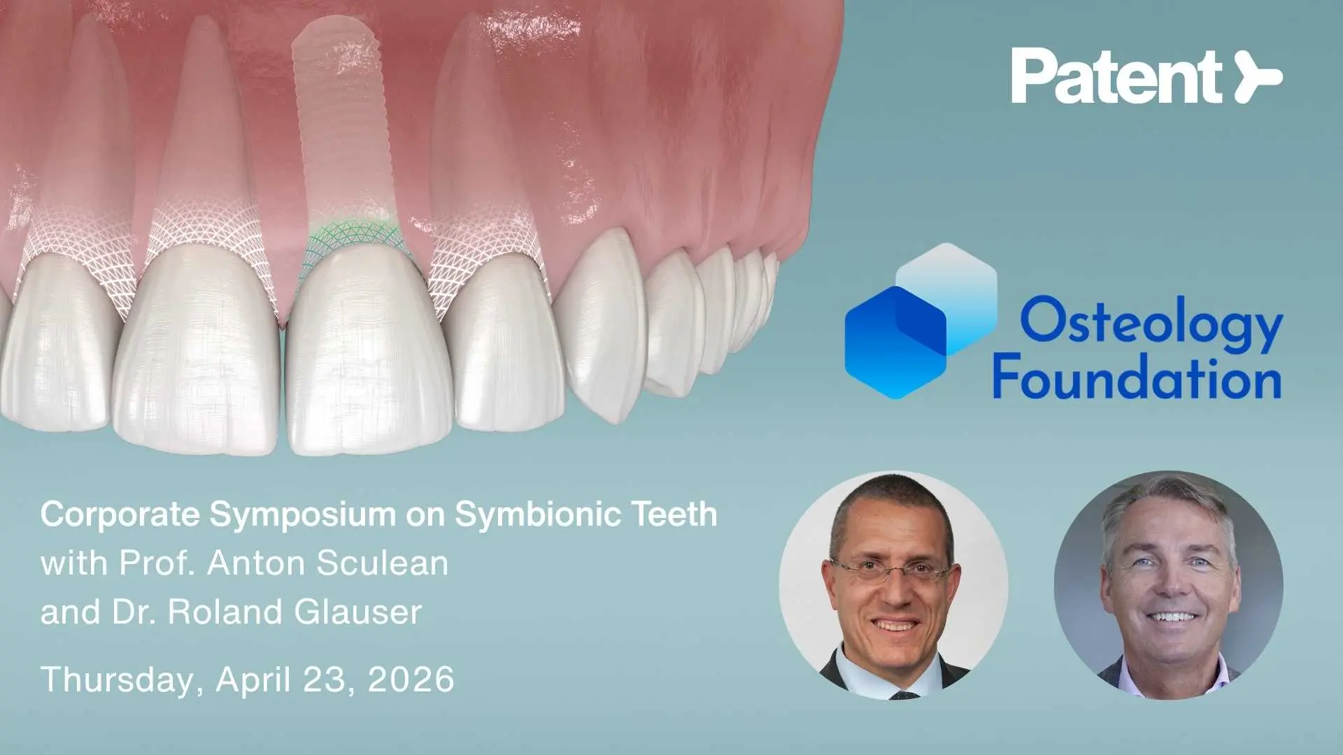 As part of the International Osteology Symposium, which opens in Vienna on April 23, 2026, Patent Medical will host a corporate symposium on Symbionic Teeth. The session will feature renowned experts Prof. Anton Sculean and Dr. Roland Glauser, who will present scientific evidence on how the mucosal defense barrier around Symbionic Teeth prevents plaque migration and bacterial invasion into surrounding tissue, effectively preventing peri-implantitis.